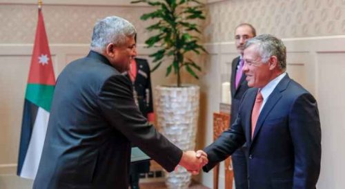 مرايا – تقبل جلالة الملك عبدالله الثاني، في قصر الحسينية الأحد، أوراق اعتماد سفير جمهورية باكستان الإسلامية المعين لدى البلاط الملكي الهاشمي جنيد رحمات.
