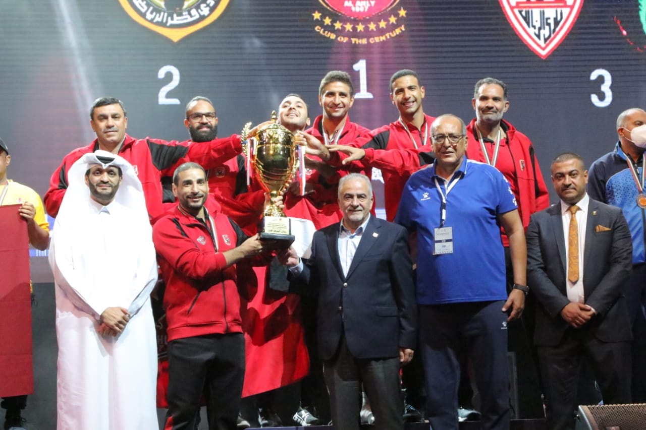 رعى الدكتور ماهر الحوراني رئيس هيئة المديرين لمجموعة الحوراني اللقاء الختامي للبطولة العربية المجمعة وبطولة الأندية العربية لكرة الطاولة والتي أقيمت فعالياتها في المجمع الرياضي “الأرينا” حيث تقابل مساء الأحد، النادي الاهلي المصري ونادي قطر القطري للمنافسة على كأس البطولة، وقد فاز النادي الأهلي المصري بالبطولة على فريق قطر القطري 3-1.