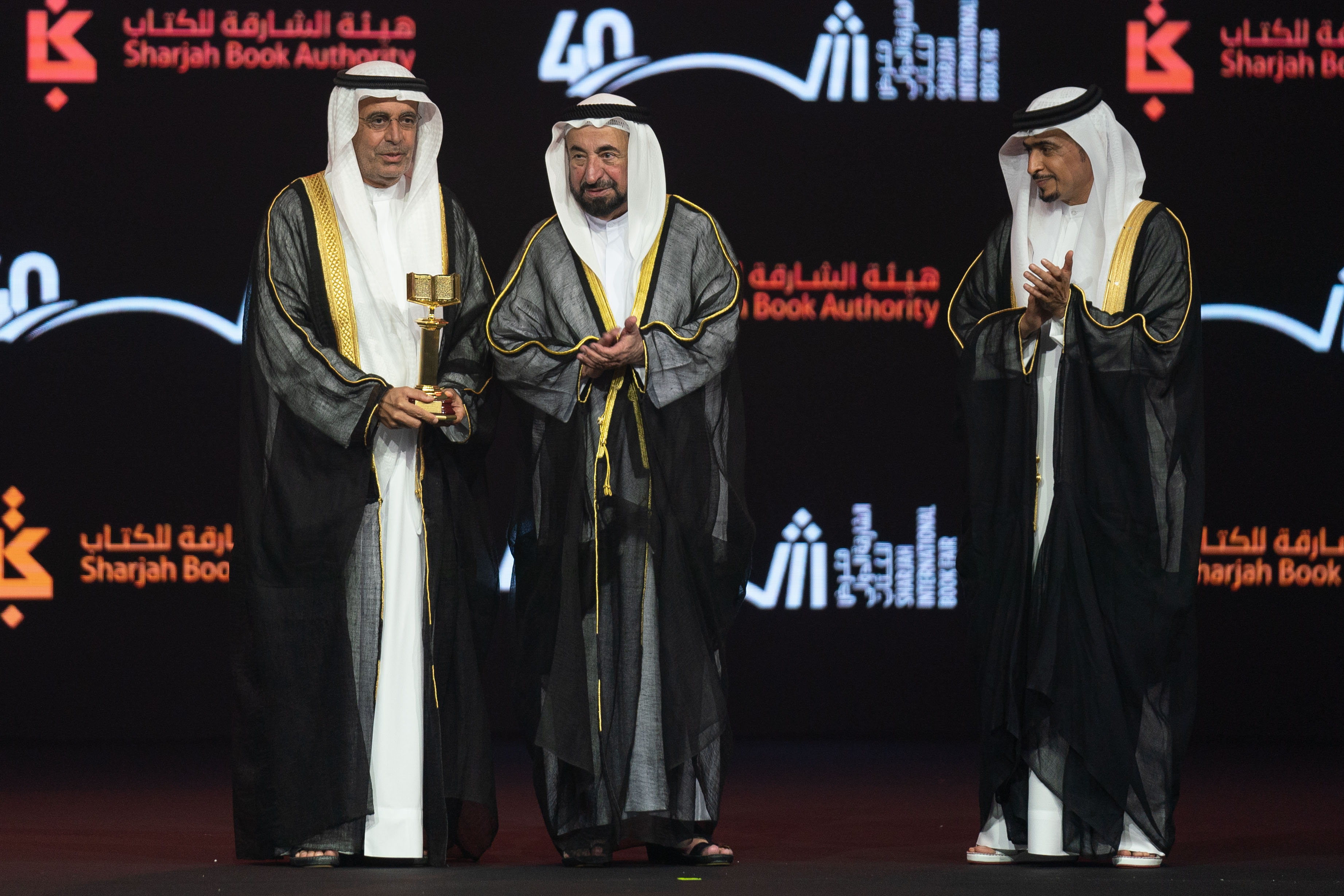 وكرّم حاكم الشارقة خلال الحفل، الذي قدمه محمد حسن خلف مدير عام هيئة الشارقة للإذاعة والتلفزيون، شخصية العام الثقافية، الروائي والأديب الكويتي طالب الرفاعي، كما توّج الفائز بجائزة (ترجمان)، والفائزين بجوائز المعرض، وجائزة اتصالات لكتاب الطفل.