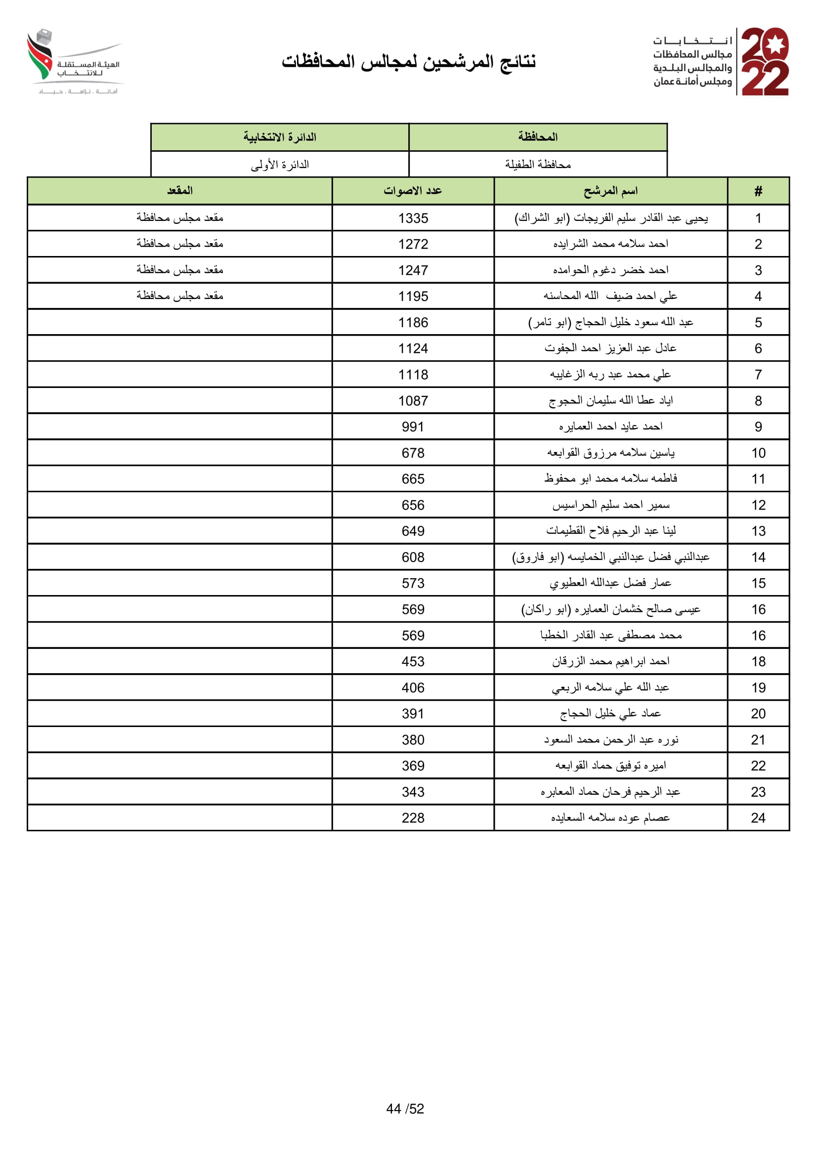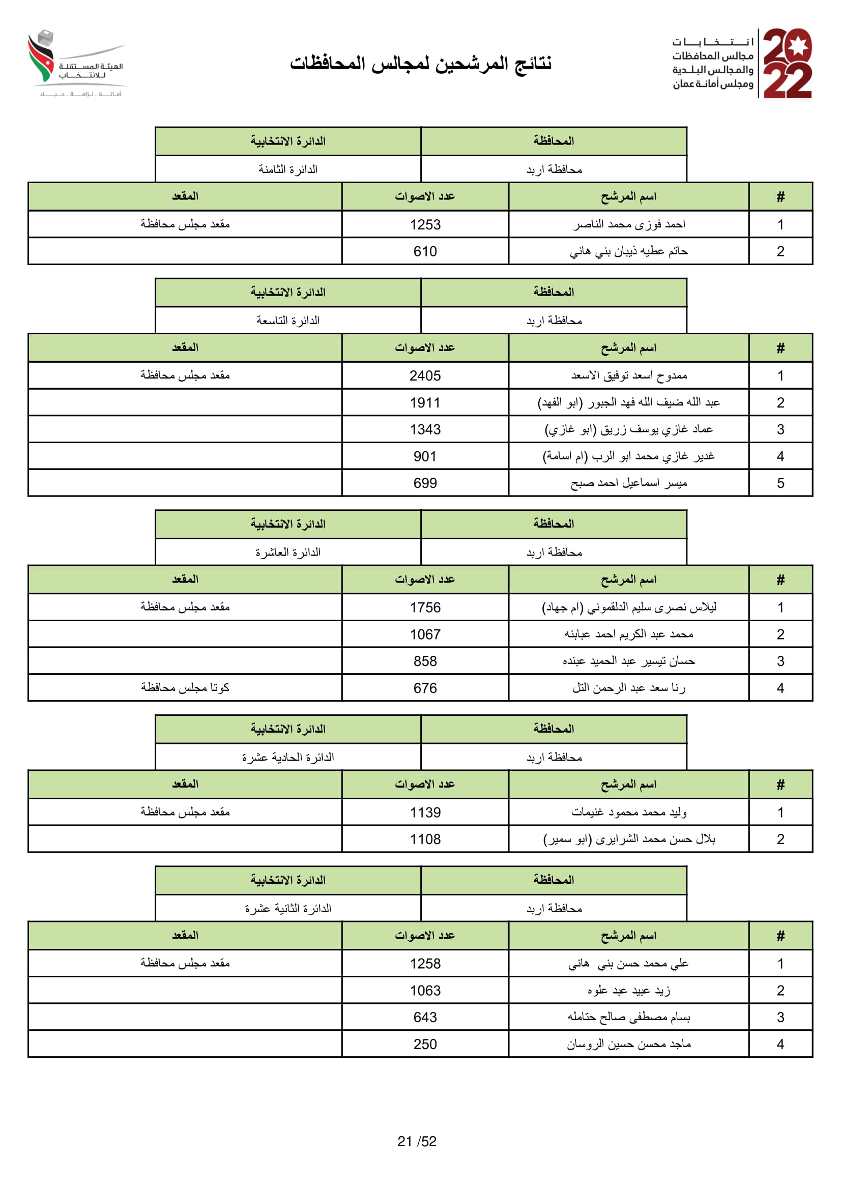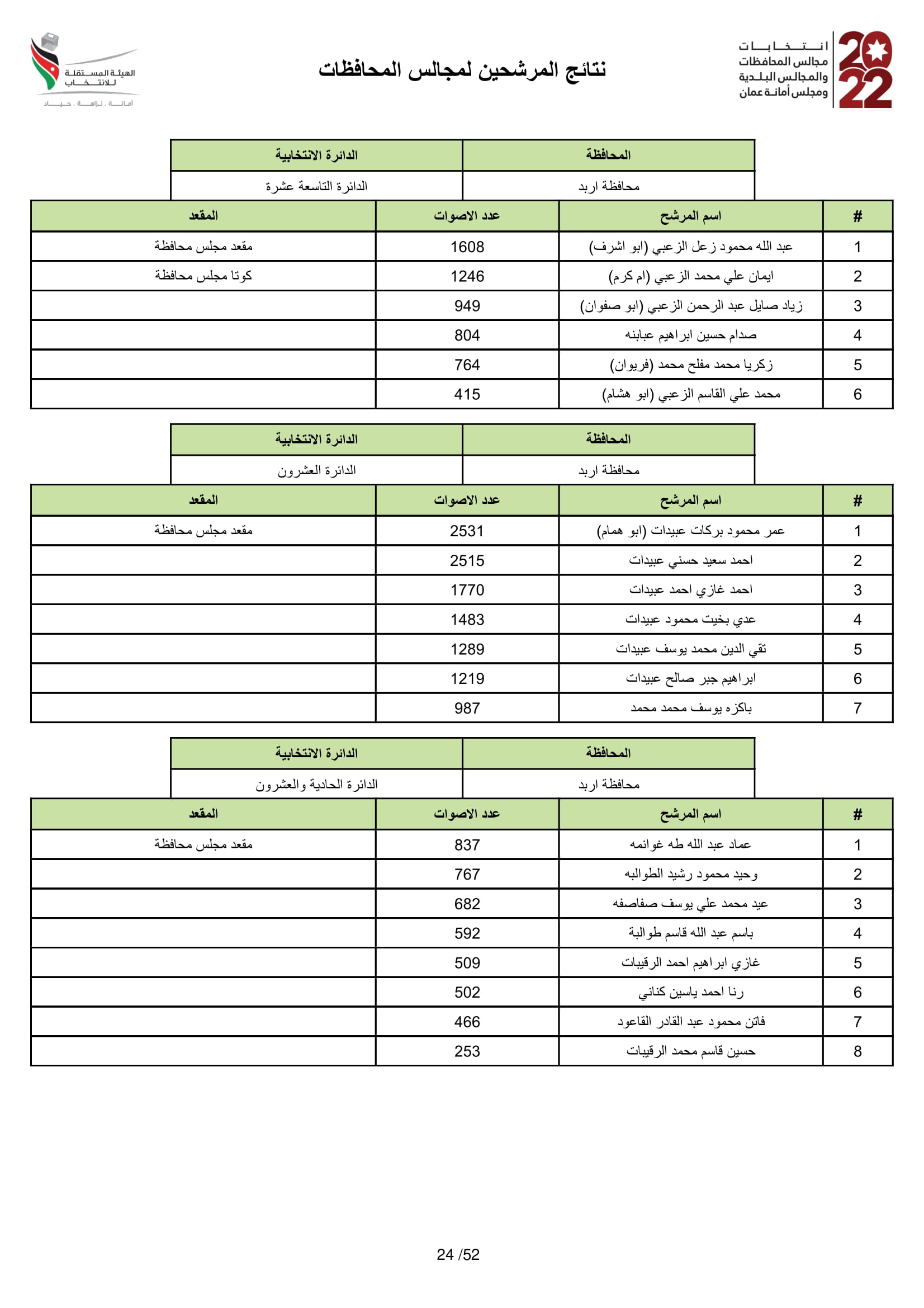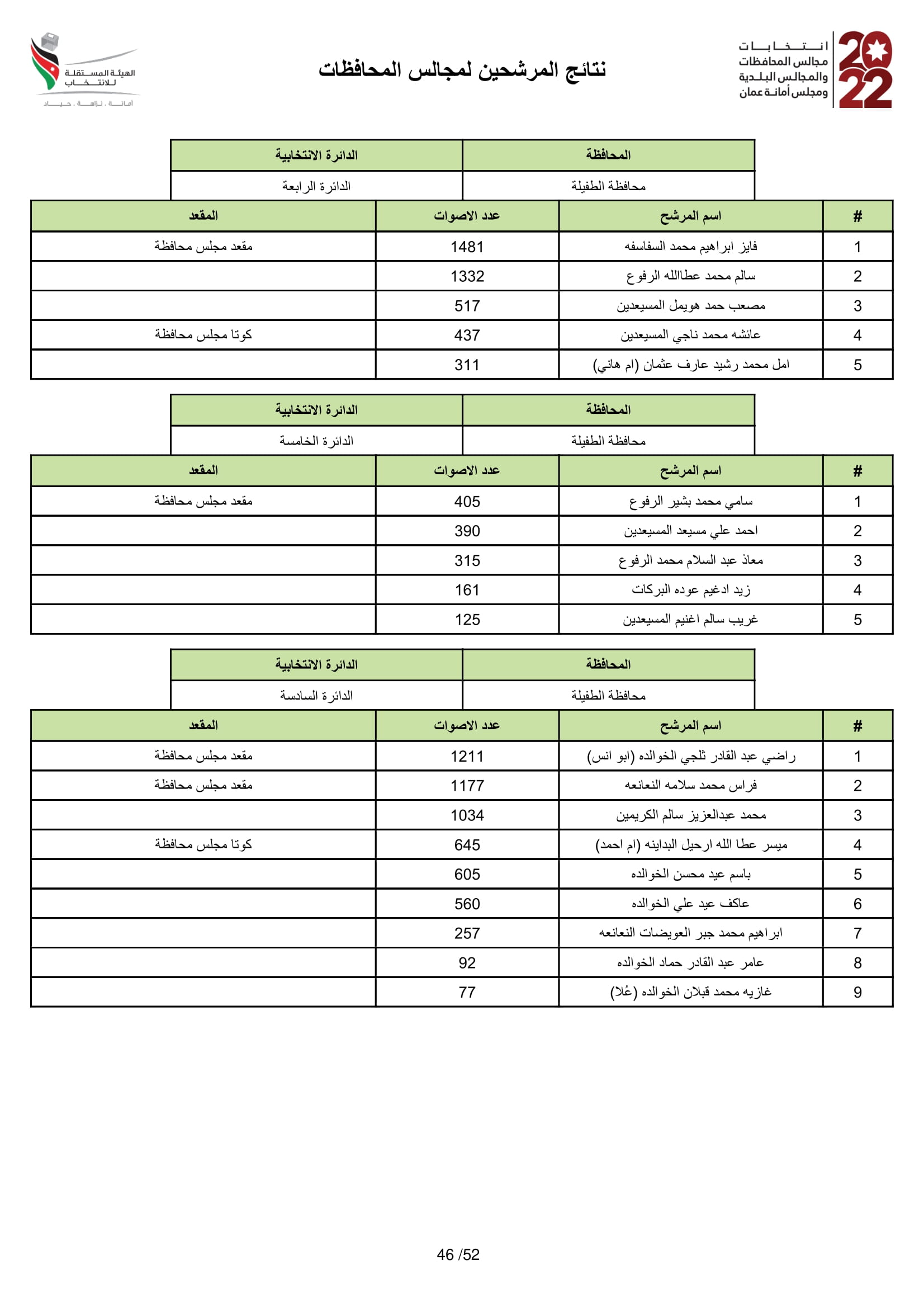 مرايا – ينشر اليكم موقع مرايا النتائج النهائية للمرشحين ﻟﻤﺠﺎﻟﺲ اﻟﻤﺤﺎﻓﻈﺎت