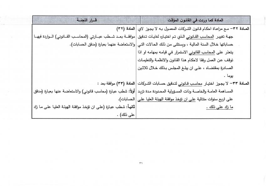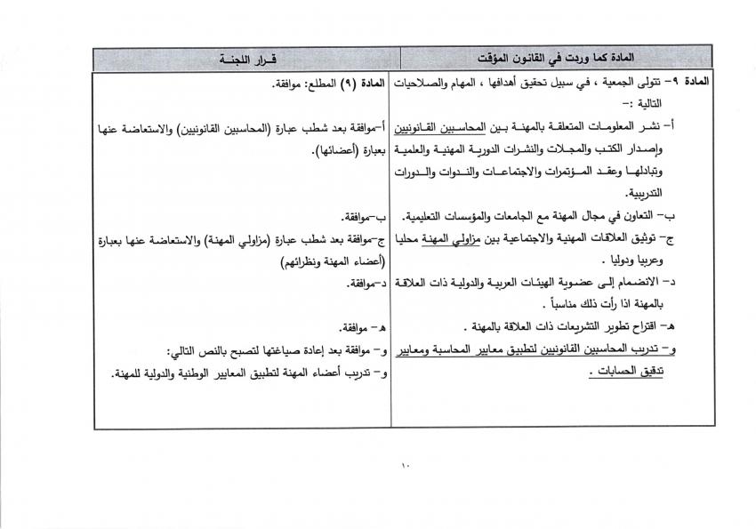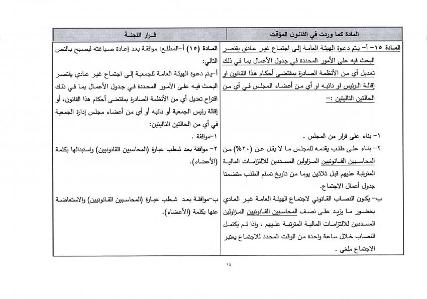 وتاليا القانون المؤقت المعمول به، وتعديلات اللجنة القانونية عليه: