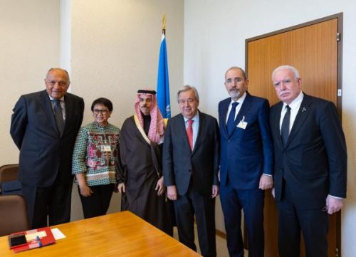 عقد أعضاء اللجنة الوزارية المكلفة من القمة العربية الإسلامية المشتركة غير العادية، برئاسة صاحب السمو الأمير فيصل بن فرحان بن عبدالله وزير خارجية المملكة العربية السعودية، اليوم الاثنين، وذلك في مقر الأمم المتحدة بمدينة جنيف السويسرية، اجتماعاً مع معالي الأمين العام للأمم المتحدة، أنطونيو غوتيريش، وذلك بمشاركة، معالي نائب رئيس الوزراء ووزير الخارجية وشؤون المغتربين في المملكة الأردنية الهاشمية أيمن الصفدي، ومعالي وزير خارجية جمهورية مصر العربية السيد سامح شكري، ومعالي وزيرة خارجية جمهورية إندونيسيا ريتنو مارسودي، ومعالي وزير الخارجية والمغتربين لدولة فلسطين رياض المالكي.