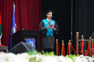 لقد أثبتم خلال سنوات دراستكم قدرتكم على تحمل المسؤولية والتفوق، وها أنتم تغادرون مقاعد الجامعة وأنتم تحملون علماً، وخبرة، وطموحاً لا يعرف الحدود. أنتم فخر هذا الوطن، وأمل مستقبله.ولا يفوتنا أن نُوجه أسمى آيات الشكر والتقدير إلى الآباء والأمهات، الذين كانوا العون والسند في كل لحظة، وشركاء الإنجاز الحقيقي.