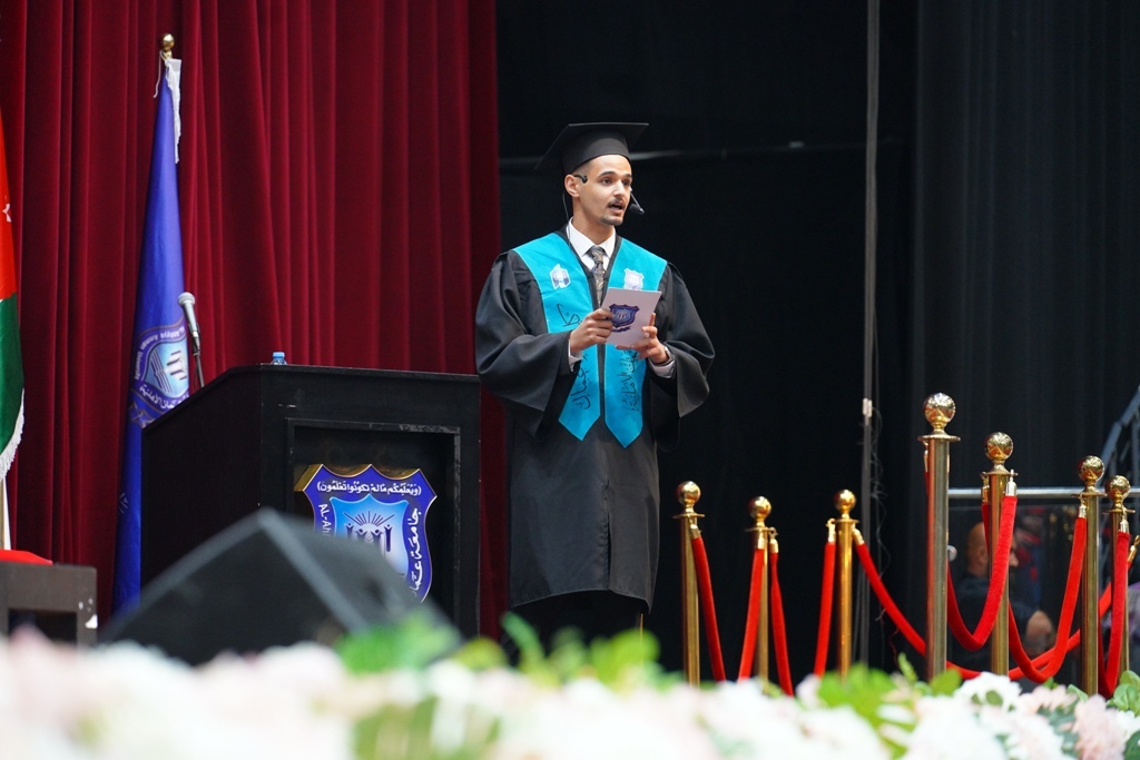 يومٌ نحتفي فيه بتخريج نخبةٍ متميزة من طلبة كلية الدراسات العليا، وكلية الآداب والعلوم، وكلية الحقوق ، وكلية الأعمال ، وكلية العلوم التربوية، وكلية إدارة الضيافة والسياحة.