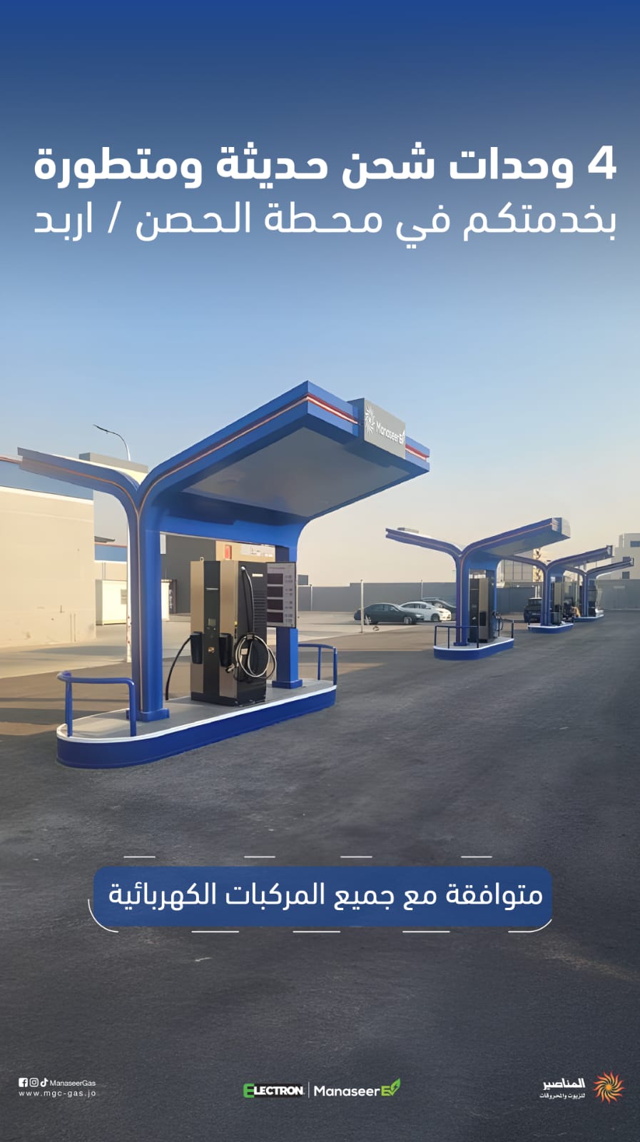 وتشكل هذه الخطوة نقلة هامة في تجربة الشحن الكهربائي وجعلها أكثر مواءمة لاحتياجات المستهلكين من حيث السهولة والسرعة والأمان والموثوقية، كما أنها تسهم في تعزيز مكانة المملكة على خارطة الدولة الداعمة للتنقل المستدام في المنطقة. والآن بات بإمكان أصحاب المركبات الكهربائية على اختلاف انواعها ومخارجها بالاسواق الاردنية شحن مركباتهم بسرعة وكفاءة وموثوقية عالية أثناء التنقل داخل محافظة إربد او بين المحافظات الاخرى ، بفضل مزايا الشواحن المتاحة حالياً في محطة المناصير الحصن، بإتجاه عمان . بالاضافة الى العديد من الخدمات والتي يستدل عليها بكل سهولة من خلال تطبيق محطات المناصير على الهواتف الذكية.