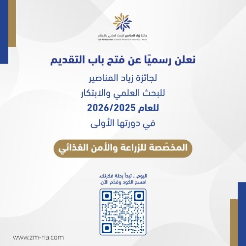 أعلنت جائزة زياد المناصير للبحث العلمي والابتكار عن فتح باب التقديم رسميًا للدورة الأولى 2026/2025، المخصّصة لمجال الزراعة والأمن الغذائي، داعيةً الطلبة والباحثين والأكاديميين الناشئين في المؤسسات التعليمية والبحثية الأردنية إلى التقدّم عبر الموقع الإلكتروني للجائزة.