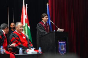 يسرّني ويشرّفني أن أرحّب بكم في هذا اليوم المميّز، الذي نلتقي فيه للاحتفاء بتخريج فوج جديد من طلبة جامعة عمّان الأهلية، بعد مسيرةٍ علميةٍ حافلة بالاجتهاد والمثابرة، توّجت بالنجاح والتميّز.حيث نحتفل اليوم بتخريج نخبة من طلبة كلية الدراسات العليا، وكلية الآداب والعلوم، وكلية الحقوق، وكلية الأعمال، وكلية العلوم التربوية، وكلية إدارة الضيافة والسياحة، في مناسبة لا تمثّل نهاية مرحلة تعليمية فحسب، بل بداية مسؤولية جديدة في خدمة المجتمع والمساهمة في مسيرة التنمية الوطنية.