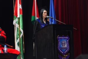 وأضافت : بَعْدَ رِحْلَةٍ مِنَ التَّعْلِيمِ وَالمُثَابَرَةِ، تَخَرَّجْتُ لِأَوَّلِ مَرَّةٍ مِنْ هٰذِهِ الجَامِعَةِ العَرِيقَةِ فِي عَامِ أَلْفَيْنِ وَتِسْعَةٍ، ثُمَّ أَخَذَتْنِي الحَيَاةُ بَعِيدًا، سِنُونَ مِنَ التَّحَدِّيَاتِ وَالانْقِطَاعِ، لٰكِنَّ هٰذِهِ الجَامِعَةَ بَقِيَتْ فِي قَلْبِي. ولحقت بقافلة الأمنيات ليصبح مَا أَحْلُمُ بِهِ حَقِيقَةً، فَفِي عَامِ أَلْفَيْنِ وَثَلَاثَةٍ وَعِشْرِينَ عُدْتُ إِلَى جَامِعَةِ عَمَّانَ الأَهْلِيَّةِ طَالِبَةَ مَاجِسْتِيرٍ فِي العُلُومِ الصَّيْدَلَانِيَّةِ، مُتْعَبَةً، لٰكِنْ أَكْثَرَ نُضْجًا وَإِصْرَارًا.