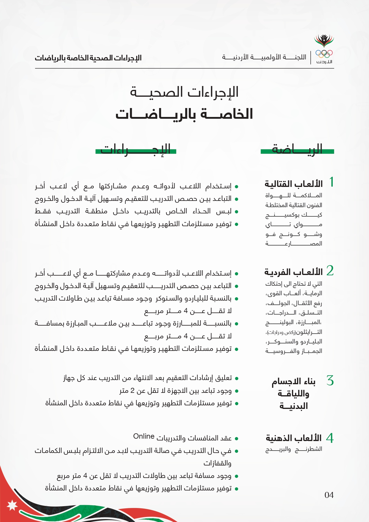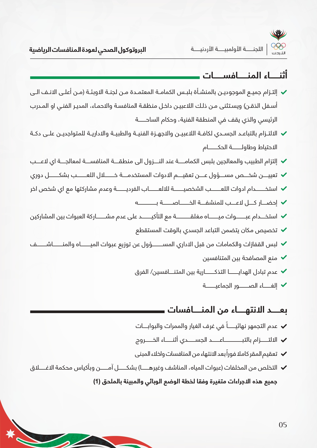 كما أعلنت اللجنة عن الاجراءات الواجب اتباعها لعودة المنافسات الرياضية.