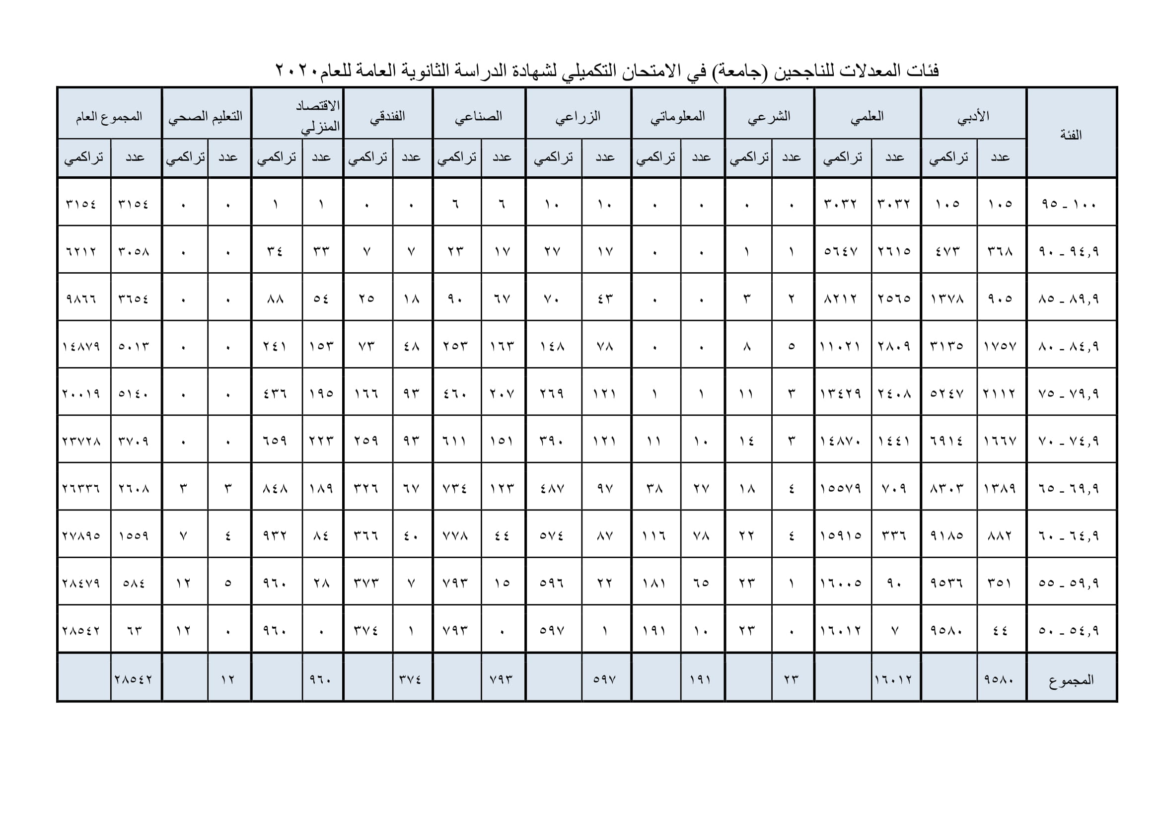 مرايا – أعلنت وزارة التربية والتعليم نسبة النجاح العامة في امتحان تكميلية التوجيهي والتي بلغت 58.7%.