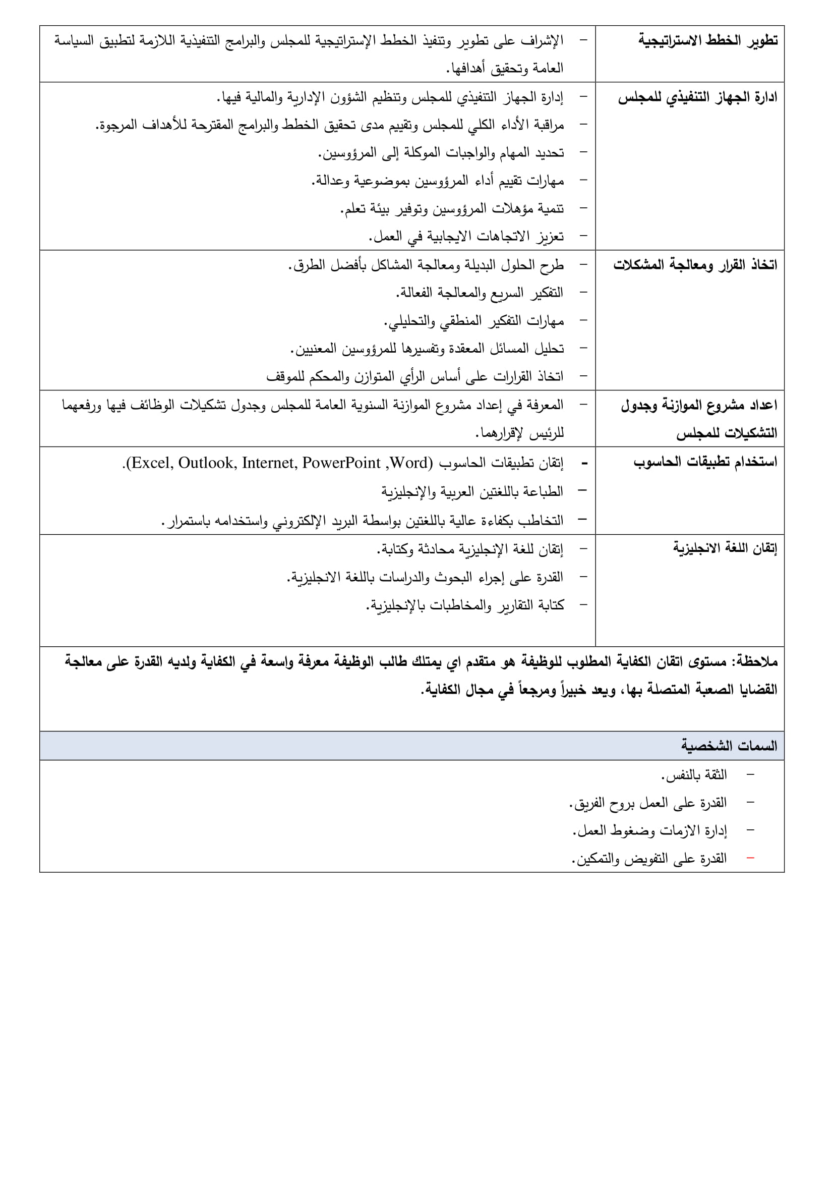 ودعت الرئاسة، ممن تتوافر فيه متطلبات إشغال هذه الوظيفة التقدم بطلب من خلال الرابط الإلكتروني على موقع ديوان الخدمة المدنية على أن يرفق السيرة الذاتية وصور عن المؤهلات العلمية والشهادات المهنية وشهادات الخبرة والوثائق المعززة للكفايات القيادية والإدارية المطلوبة للوظيفة.