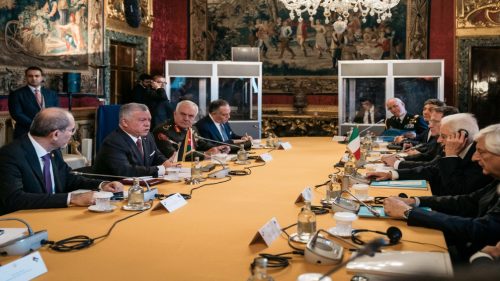 وحضر اللقاء نائب رئيس الوزراء وزير الخارجية وشؤون المغتربين أيمن الصفدي، ورئيس هيئة الأركان المشتركة اللواء الركن يوسف الحنيطي، ومدير مكتب جلالة الملك، جعفر حسان، والسفير الأردني في إيطاليا قيس أبو دية، وعدد من كبار المسؤولين الإيطاليين.