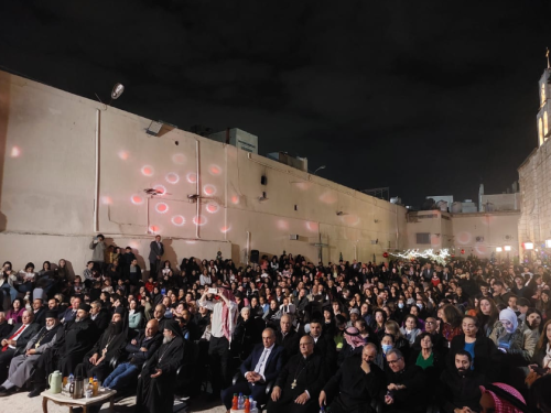احتفلت الطوائف المسيحية في منطقة الحصن بافتتاح “بازار العطاء” الميلادي السنوي الذي تنظمه كنيسة القديس جيورجيوس للروم الأرثوذكس، تزامنا مع إضاءة شجرة الميلاد المجيدة.