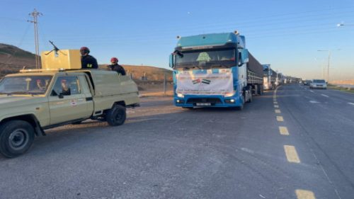 ويأتي تسيير القافلة للتخفيف من الأعباء المعيشية عن الأسر المتضررة جراء الظروف الراهنة، وبالتنسيق مع الحكومة السورية لضمان وصول المساعدات بكفاءة ويُسر.