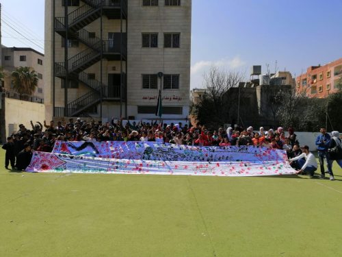 مرايا – نظمت اللجنة التشاركية للعمل الفتياني التابعة لجمعية رعاية الفتى اليتيم في مخيم الحسين، برنامج جدارية بعنوان “الارض والام والكرامة”، ضمن المحطات ال45 في فعالية “ان عائد”، الجمعة.